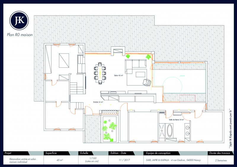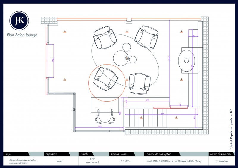 Japïr & Kapala réinvente l’alliance entre salon et entrée avec une réalisation pensée comme un espace fluide et accueillant. Le mobilier sur-mesure s’intègre harmonieusement entre les deux zones, avec une structure graphique, des matériaux nobles et une palette sobre qui valorisent tant la première impression que le confort du séjour. Le projet illustre parfaitement l’approche de l’agence : un aménagement élégant, fonctionnel et personnalisé, où chaque détail participe à la cohérence globale.