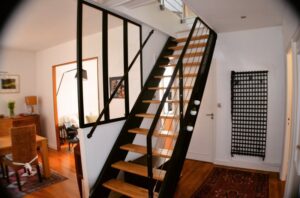 Le client souhaitait créer un espace de stockage « discret » pour son appartement de type Haussmannien tout en gardant du cachet. Nous avons créé cet espace de stockage derrière une cloison faite de miroirs teintés.
