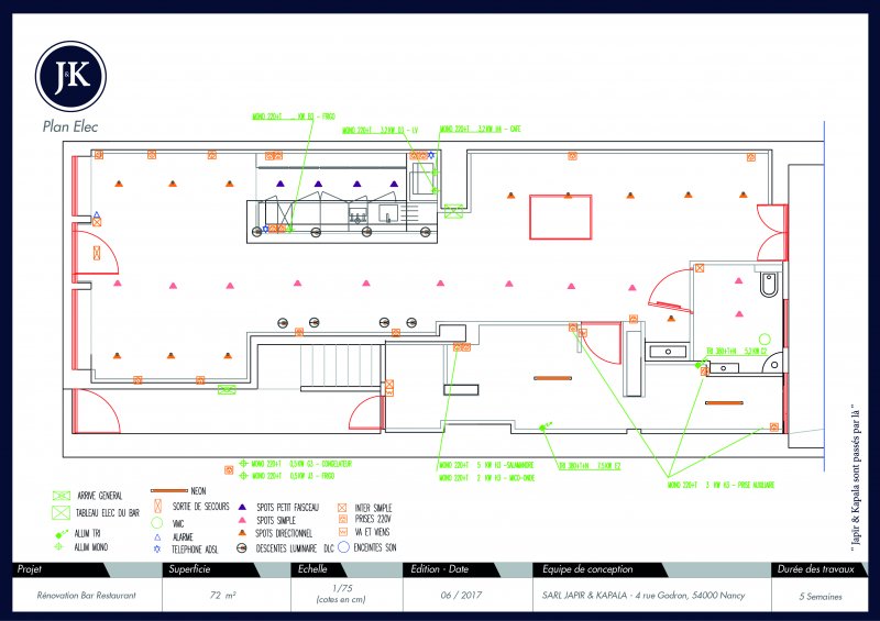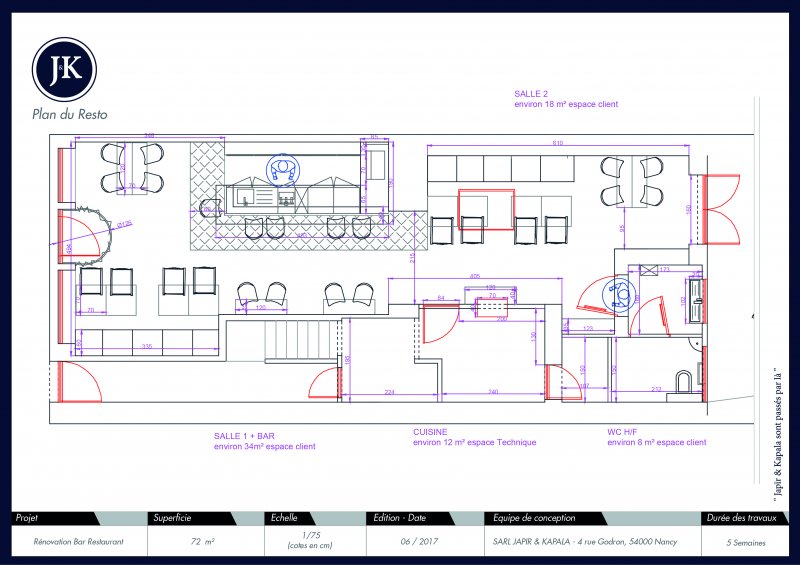 Cette espace non-occupé depuis un certain temps a été l’occasion de créer avec nos clients un nouveau lieu de rencontre à proximité d’un campus étudiant dans un esprit bistrot. Le lieu a été partagé en deux espaces: un côté bar et un côté restauration. Le mobilier, les miroirs et l’acier noir ont participé à donner vie à cet esprit.
